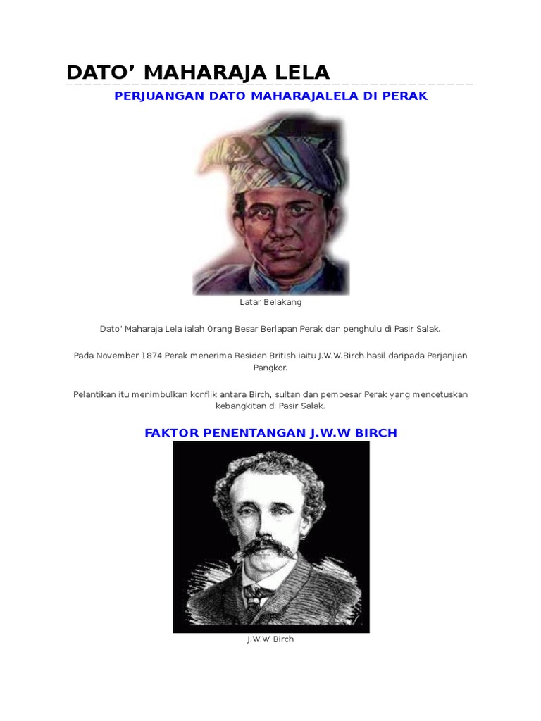 Dato Maharaja Lela from imgv2-2-f.scribdassets.com Pada november 1874 perak menerima residen british iaitu j.w.w.birch hasil daripada perjanjian pangkor. Pada november 1874 perak menerima residen british iaitu j.w.w.birch hasil daripada perjanjian pangkor. 20 januari 1877) ialah seorang pembesar kelapan perak yang merupakan pejuang bangsa yang bertanggungjawab kepada sumpah dan janjinya dato' sagor (bulatan) berdiri di belakang sultan abdullah. Tv 1.351 views9 months ago. Dato maharaja lela is the hero of perak who had stand for his own states. Dato maharaja lela perak pejuangan tokoh tempatan. Dato' maharaja lela ialah orang besar berlapan perak dan penghulu di pasir salak. Fitur baru yang ada juga memungkinkan anda untuk beralih ke latar belakang desktop yang berbeda.